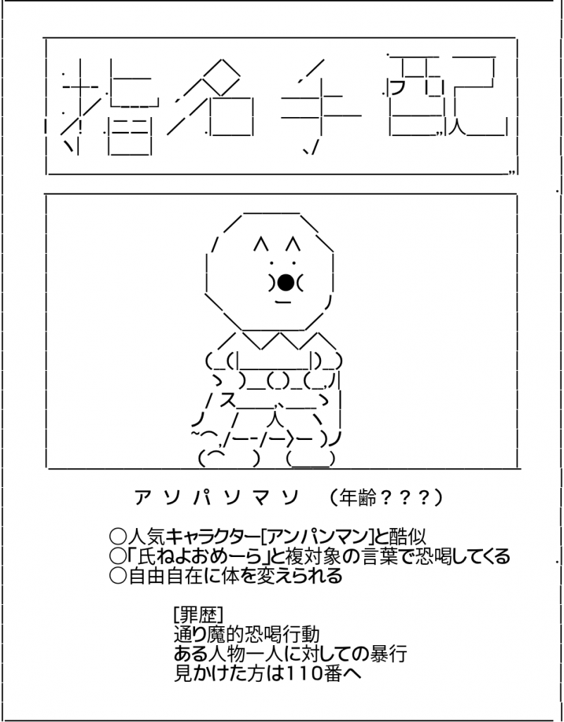あそぱそまそ♪ 111歳いまだに無職っ♪ 趣味は銀行強盗♪盗殺人鬼ぃ〜♪ っていう替え歌を弟が歌ってたがやなせたかしさんに 失礼やろがい!って思ったンゴ 描くの頑張れ!