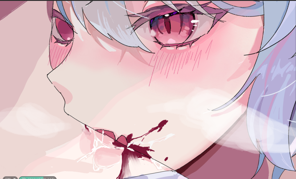 全体が淡い色調だから、一番注目させたい「噛み付いている口元」や「瞳」の周辺に、一番濃い影色(例えば濃い紫やえんじ色)を少しだけ置いてみると良い。画面全体がキュッと引き締まるぞ!